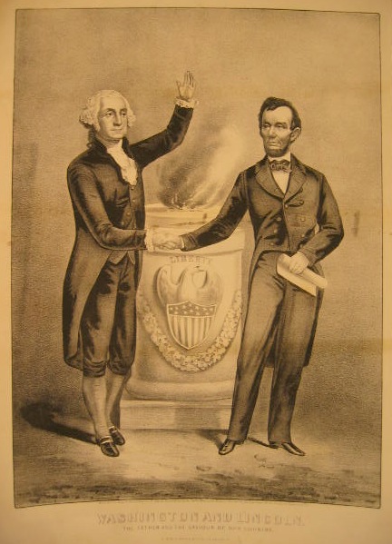 Washington and Lincoln. The father and the savior of our country, c.1865. |