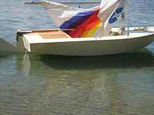 Tilt-tongue trailers are supposed to let the boat slide downhill into the water like so much cow pies, or gravel, or rose bush clippings sliding outa' a tipped up wheel barrow. But, with the geometry of the thing, you need a lot of weight at the rear end of the contraption to make it tilt. And, a plywood sailboat without a motor on the butt is decidedly not heavy in the rear. And, yet, the short tongue and narrow wheelbase of this rig just cries out for a way to get the boat into the water from her high perch on that little candy assed trailer frame. And, that brings us back to the tilt tongue setup.