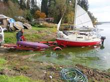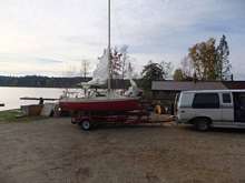 It didn't rain yesterday. Temps in the "high" forties. Yesterday was supposed to usher in a few more weeks of an extended sailing season. Yeah. Things were lookin' good. I had Lady Bug home from storage, cleaned out from the Movable Messabout finale duties she performed way back in September, and ready to launch.