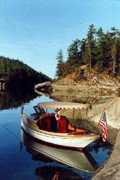 The Gentleman's Launch has an aft cabin, with period-piece joinery and brightwork. Sort of like this.