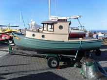 Another pretty cool notion. But, just when I think I've got the matter settled. There's this little Paulsbo Boat, that was rehabbed and transmogrified by Marty Loken, in Port Townsend, WA 15 or more years ago. As it happens, I had Lady Bug on display right next to that very boat in July during the Pocket Yacht Palooza. Little Salty is a real looker. And, I can come up with a list of reasons why Miss Kathleen could look a lot like this.