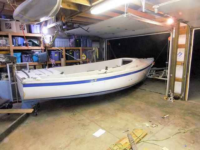 Ok, I’ll admit to being at a sort of nexus this morning. It’s almost dawn. The sky over the trees to the east is just starting to lighten. I’ve been up for about an hour. And, I suppose the expression, “All dressed up, and no place to go” has some relevance here. In about the past week or so, I’ve managed to bring a disregarded old sailboat hulk from a pine needle-collecting device perched on a rusty old trailer out in the woods, to the matrix for something much better. There was considerable effort, bruises, and blood involved. A lot of hurry-up.