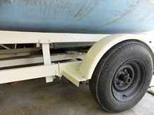 The first time around, a “squisher board” was forced into place from below with jacks, wedges, and a high degree of wishful thinking. But, after some helpful hints about Darwin Awards, and a few close calls with things like drills and hammers and such; I’m pretty reluctant to work on the hull when it’s not on the trailer. And, there is now a 10 foot long keel tray on the trailer that involves a bunch of steel weldments that I had to remodel forcibly with grinders, Sawzall, and plain old fashioned metal fatique. Not the sort of thing a guy wants to take apart again.