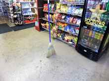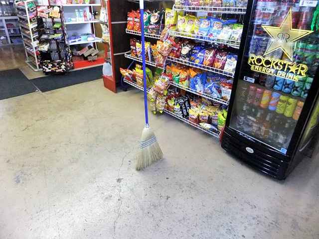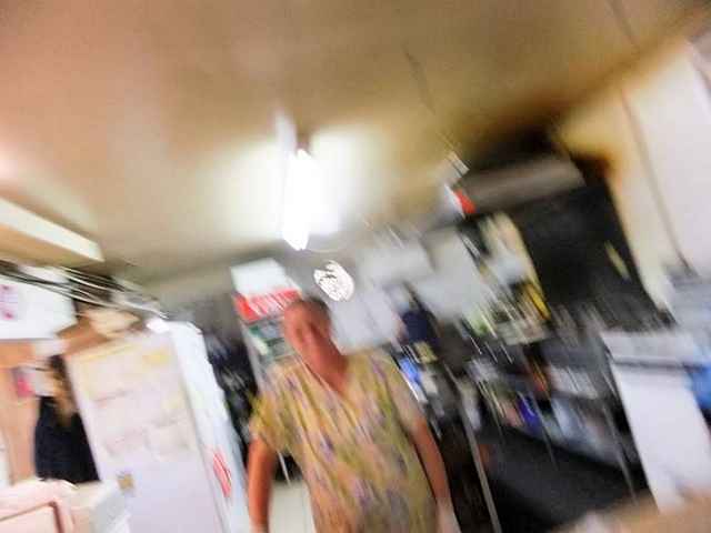 I’m pretty sure there was “something else” happening here. When I asked the lady behind the counter about the broom just standing in the middle of the floor, she said, “Oh, that broom? It just walks in here, and stands around, a lot…” No, it isn’t hanging from the ceiling, or on a pole. Just “standing there.” I asked if I could take the lady’s picture, and she said “OK”. No, I don’t remember shaking, or the wind blowing, or anything. But, here’s what I got.