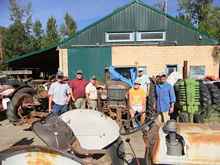 After the “universal salutation” that I find useful in these free-form expeditions, “Hey, guy! Is that the original paint…?” A fellow emerged from the shadows. “Nope…been repainted…once…bought it new…” Also in the garage was a WWII baby cat, a vintage Minn’Moline, a collection of make & break engines, and a grand daughter. She was on the lower end of the broom handle. Deftly sweeping the floor, while apparently not missing a single bon mot via text message. I asked him about the tractors across the road. His, too. Come to find out, this is somebody else that I “know” without ever having talked to him. Mick is the guy I sent the pictures to, of last September’s messabout gang sitting on his tractors, standing amid the ancient iron, and generally having a ball.