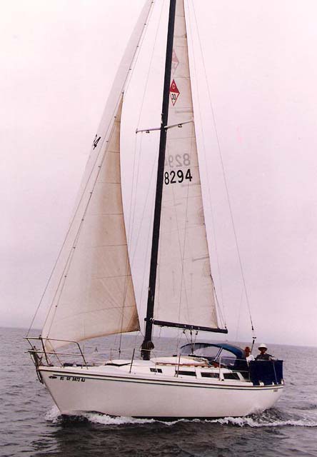 So, it was about the middle of January, 1994. Calm and gray. Even under the best of circumstances, a 120 mile round trip at 4 knots - or sometimes it might be possible to sail dead to windward at 5, 6, or even 7 knots for twice the distance over the ground - was expected to put a major hole in a weekend. I signed Val on as crew, and we shoved off straight into the ground swell, fog, and light winds of winter.