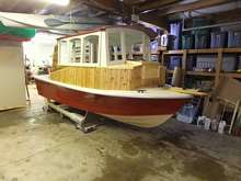 The building guys got a whole 'nuther boat put together and loaded. That would be the decked-over runabout, "Strumpet."
