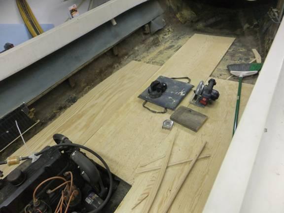 One morning, when I went out to the shop to just sort of check on things, everything was in a tizzy. The building folks had put "Roughneck" back on her trailer and hauled her off to storage again. Talk about a lot of man hours and effort. Somehow, there was yet another forlorn hull sitting on the building cart with piles of stuff being ripped out and perfectly good plywood getting reduced to dust, noise, and small chunks all around it.