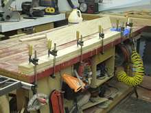 So, while I'm getting my evening dose of Motrin, as antidote for the day's activities, the beam is awaiting the TBII to harden. Next , it has to be shaped to the camber, mounted transverse, covered with a plywood "sub-floor" and ultimately done in hardwood planking to match the engine cover.