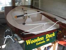 Move forward about twenty years and we are now in Oklahoma and Mike has become a builder of little boats, not an owner of a schooner or a sloop nor a yacht broker. I thought the small boats enchanting, especially the ones like the SCAMP by John Welsford and the Laguna Dos by Jim Michalak. I loved Laguna Dos, a beautiful and graceful boat and at 23 feet plenty big enough for multiple people to sail in her, twin masted she reminded me of our schooner. I never once got to sail in her and despite me begging Mike to build another one, I never will. Never got to sail in the Red Scamp or any of the Ducks, not even my own Kiwi Duck, gifted by John Welsford. The larger fiberglass sloop rigged "Sea Biscuit" got put aside for building more small wooden boats and never finished nor put in the marina as planned, so I never sailed in her either.