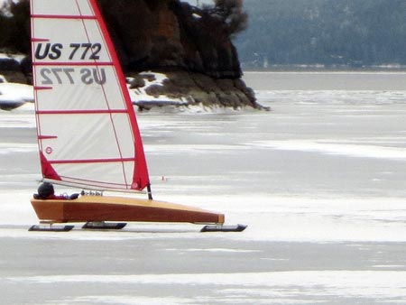 It occurred to me that small iceboats allow for much more iceboating to be done. I would be lucky to get three good weekends in with my big iceboats. Most of the local places are too small for a big boat. The Mini only needs about a half mile plate of ice. I could transport it in my little truck and set it up in no time.