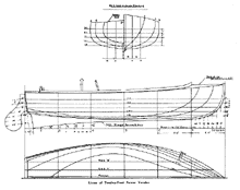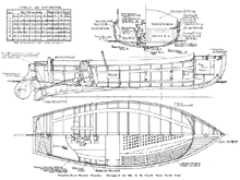 Her dimensions are: Length on top, 10 feet; water line, 8 feet 7 inches; beam extreme, 3 feet 8 inches; at water line, 2 feet 9 inches.