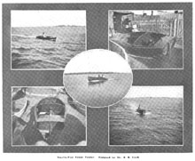 Above, we show the plans of the two Universal-powered tenders for the yacht Nenemoosha. Both of these boats are of rather novel construction and the designer, E. R. Carroll, has not been bound by convention in getting them out. The tunnel stern boat will be used for fishing service and is arranged so that the owner can control the boat entirely from his fishing chair. She is 15 feet long, 4 feet 2 inches wide and only draws 6 inches with 3 men on board. The other boat will also be powered with a Universal engine and is strongly reminiscent of the English tenders. A feature is the crew cockpit and tiller steer arrangement. She is 16 feet long, 4 feet 6 inches wide and draws 16 inches.