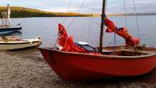 Jamie comes from the Ottawa area – we like him anyway. He brought a skiff that was designed in the late 1800’s. The plans were made available through Popular Mechanix – he made a plywood version and did a very nice job of it. This boat put me in mind of a Michalak Mayfly. In fact Jamie made his own lug sail from Jim Michalak’s design and it pushed that boat around very well.