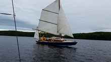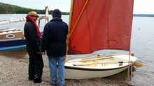 Clare and Brian brought one of their Swampscott Dories. Clare and Brian’s boats are beautiful – they have more boats than the Canadian Navy (I think that’s about twelve…) and they are all finished to such a high standard. This particular one is a sailing dory complete with an outboard well and two rowing stations. Melody, their dog, was always right there in the middle of the action keeping an eye on things.