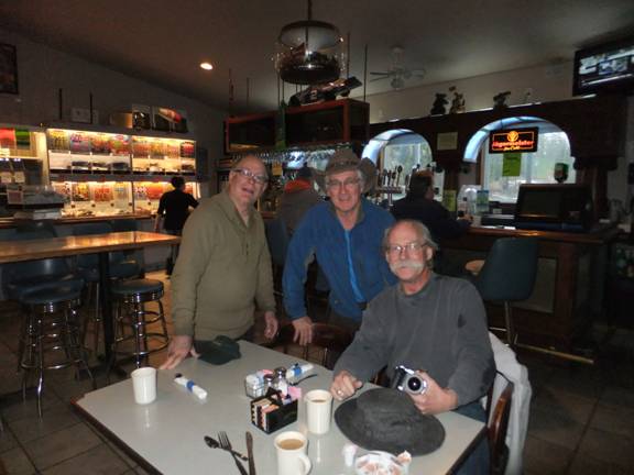 It took very little to convince all hands that there are better places for a gam than a very-rainy launch ramp parking lot. Kurt knew about a roadside bar 'n grill someplace between Harstine bridge and Shelton. And, after breakfast, we followed him through the muck and flotsam about another 30 miles to his shop in Olympia. And, that was well worth the trip!