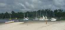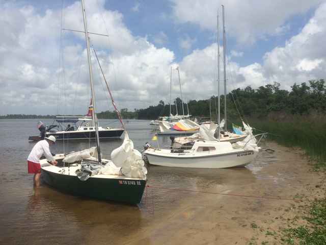 Skull Island fleet including Murray White’s O’Day Widgeon at the left. The smallest boat to reach Skull Island! |