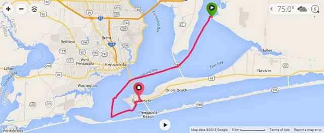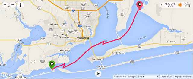 Both wind and sea had calmed considerably overnight and I enjoyed a pleasant beam reach most of the way back down Pensacola Bay. I sipped coffee and munched on a granola bar with occasional glances over at John Gibson’s plucky Bolger Micro which was matching my course back to Shoreline Park. In many ways, this final leg proved to be one of the most enjoyable transits of the trip.