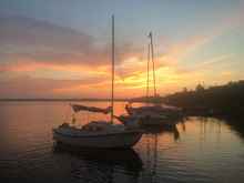 Intrepid Murray White would sail his tiny Widgeon further up the bay where he had cleverly pre-positioned a bicycle that he would use to retrieve his vehicle and trailer. Several others had communicated with the ever generous Pat Johnson who had offered to pick folks up at a nearby ramp and then car-pool them back to their vehicles. For Bandit and I, it would be a final sail back to our starting point at Shoreline Park. No sooner did the sun peak over the horizon at round 6 a.m. than Bandit and I pushed off for the final leg home.