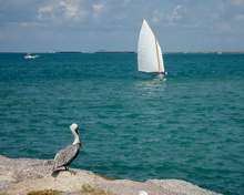 Here's the 31' Bolger folding schooner from another angle. Note the abundance of sails. The teal-hulled Scamp aft of her is an Everglades Challenge Finisher named "Fat Bottom Girl." Beyond "Fat Bottom Girl" is "Dianne's Rose" a wooden cruising houseboat that the owner/designer/builder, Roy Schreyer, trailered down from Ontario, Canada. And I thought we had a long drive!