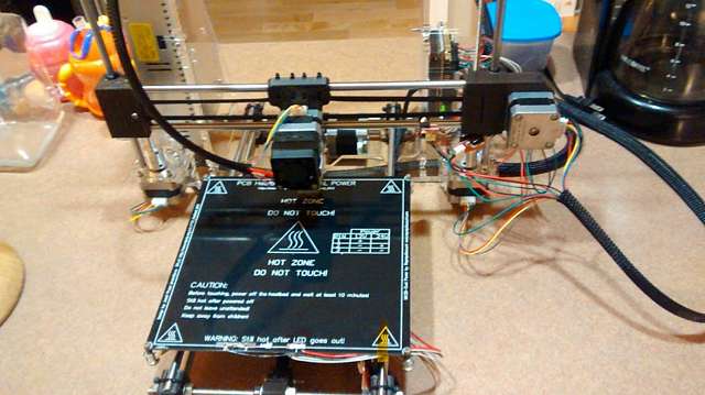 Here’s a little background here for those unfamiliar with the technology; these have been around for 20 years or so and are simpler than you think, though only recently have great strides been made in bringing them to consumers like myself. Just like a milling machine moves a cutter around along the X, Y, and Z co-ordinates to cut a 3d part from a larger blank, a 3D printer moves a little head around the X, Y, and Z axes with an extruder, which is essentially a hot glue gun nozzle being fed with a plastic filament. It builds the part one cross section layer at a time, being controlled by a computer. Here's my printer: