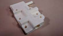 Step 2 was to actually make the part (or really just the blank for the casting, but more on that later). I fired up the printer, fed it the data from my cad system, and sat back drinking coffee while it whirred & hummed and built my part for me. Here's the printed part: