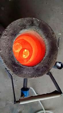 I've dabbled with metal casting for some time now, so I already have a little propane furnace to use, but if you don't they're very simple. All you need is a couple steel buckets (in my case an old 15 gallon grease drum) lined with a mixture of fireclay & sand, and the burner is nothing more than a couple bits of plumbing hardware.
