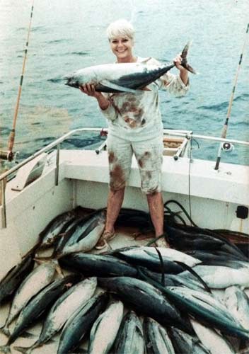 About 40 years ago, back in my powerboat days, all blood and guts, in a boatload of lovely albacore. Sitting on the back deck I filleted about 20 fish on the 60-mile ride back. I caught 9 of these 20-30 lb. beauties myself. That was a lot of sashimi! Ah, the good old days...