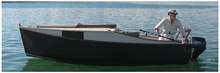 Kiss of the Wolf* was built in 2008 in a Nazareth, PA backyard. She is a fifteen and a half foot, outboard-powered, flat-bottomed skiff in the Sharpy style to lines drawn by boat architect Jim Michalak (AF4b).