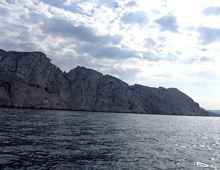 But this, not at all. The coast is mostly fantastically shaped limestone cliffs, and small beaches, unpopulated for the most part, and the marinas are mostly part of a small port, so tying up to the town quay for a few hours in order to walk about and visit the patisserie, boulangerie, epicerie, is not a problem. The local populace pays me almost no attention: for every MegaYacht in the harbor, there will be a hundred small fishing or sport boats not much larger than mine.