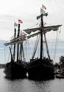 Both ships are caravels, the workhorse vessel of the 16th century Mediterranean. (The Santa Maria, according to the foundation's website, was a larger "nao" and Columbus disliked its sailing qualities, considering it slow.)