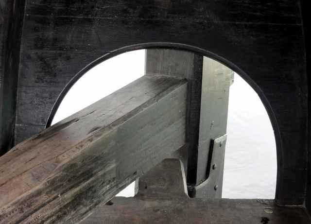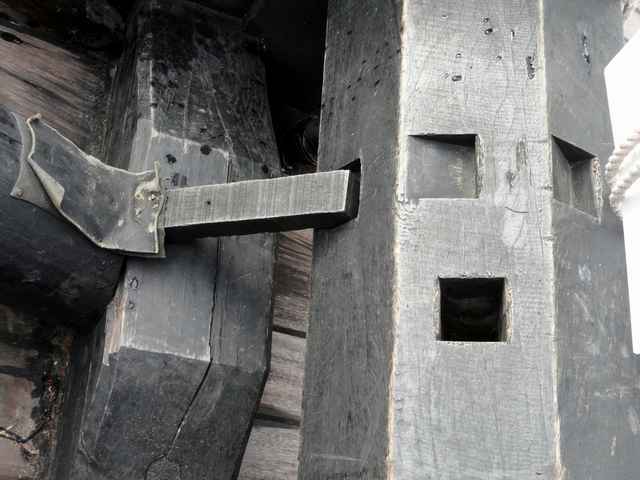 The wooden capstan in the bow, the only winch on the boats. |