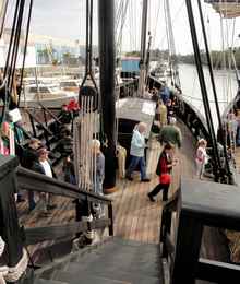 Tallahasseans seemed fascinated with the ships. About 2,700 visited the day I first traveled down and gave up because of the long lines. It looked like that number may have been matched the day I made it aboard, as the waiting line was quickly growing when I left. No one seemed to mind the wait to step back 500 years in sailing history.