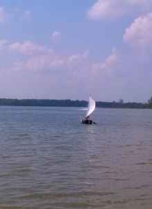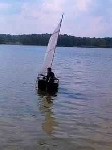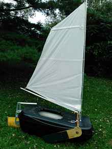 Carrier moved well and could be headed on a reach fine in the really light air. Craft showed promise of better performance with the improvements list checked complete, and some real wind. Not bad for a first time design! I could have confidently crossed the lake's mile, and returned on a downwind run. |