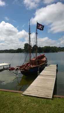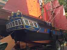 Stuart Reid designed a 23 foot Pirate ship for me about 3 years ago. She took me 2 1/2 years to build, which was a labor of pure love. He said that he consulted with you on the project and final design, and always had nothing but the highest compliments when talking about you. Here is a picture of her under sail last summer.