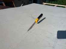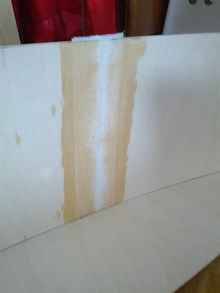 Reinforcement patch for "folding point" near bow/stern. Patch also from drywall tape, applied both sides of the sheet. |