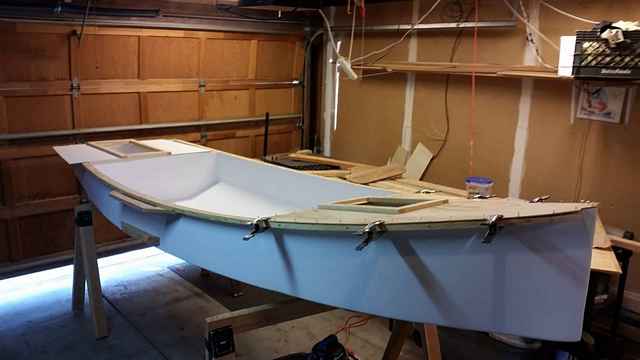 My biggest mistake was in measuring and cutting the bilge panels. I wanted those big ply sheets gone before the family got home, so I skipped a few steps and tried to guess what size the bilges would be. It later turned out that they were completely incorrect and I had to chop them into smaller pieces and stitch them back together again. Another mistake was not adequately secure the forms before taping it all together. The hull is slightly crooked, one side bulges further than the other, and one corner is higher. Its hard to tell though.