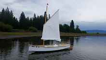 The boat moves fast, it is long and thin, and slippery. With the new mast it picks up speed quickly. With the old mast, the lug sail would spill too much wind. I had the lug sail reefed to about 55 square feet because the mast would bend about 20 degrees to leeward, causing mild panic in me. Performance-wise, it was a bit frustrating. The boat would get up to a mild plane then just seem to hesitate. I haven’t taken the new mast out in strong enough winds to really see what it can do, but I’m hoping it’ll pick up enough for me to get my butt out on the gunnel and really get it moving. (Note to self – add toe-straps before you do that). If the boat doesn’t get moving fast, I’ll seriously regret not building a GIS. I believe it will though, just needs more tweaking.