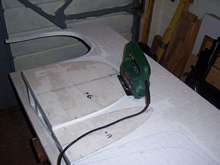 After sanding smooth the outside of the hull I draped the glass cloth over it and worked it onto the shape with no wrinkles.