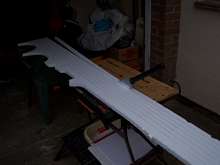 A set of 2 by 1 inch polystyrene gunnel strips were PVA'ed along the shear line.