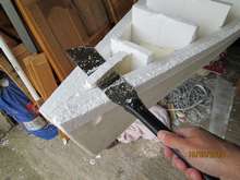 A coat of waterproof PVA adhesive was brushed on through the weave of the cloth to bond it to the polystyrene underneath.