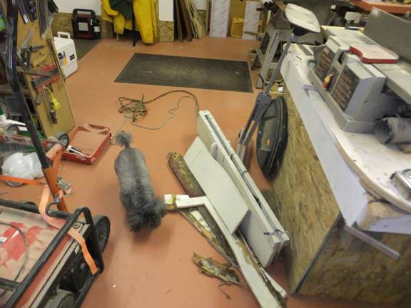 Well, I ran outa’ magic fairing goop not even half way to the finish line.  One side had a variable-thickness pancake makeup look.  The other side was still multi-coated with spray-on primer.  Yeah, I know.  My sophomore-year science teacher told us not to have more than one experimental variable in the stew at a time.  Yours probably did to.  But, life is too short not to mess around with multi-variate matrices now and then.  And, what better place to try “something new” than on the aging skin of a 37-year old plywood boat that once lived in a chicken barn?  So, I ordered another bucket of goop from Chuck, and shifted to some sorta’ small details while I waited for the Pony Express rider to come galloping up the trail with my stuff.  Oops.