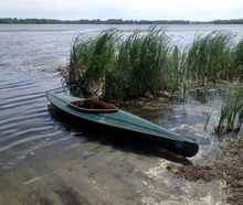 A couple of cedar boards, half a sheet of plywood and a role of Dacron reinforced vinyl. Work on them on and off for a month. Your reward is a wonderful 13' 6" Sea Scout covered canoe (AKA kayak in the states). First splashed this past May in South Stanchfield lake and on a trip down the Rum River. The boat is light, stable, a delight to paddle, and handles waves with ease. It is built skin on frame style. Plywood frames with keel, gunwales, and stringers attached. The skin is RSI 18 oz vinyl that is stretched and shrunk over the frame. The design is by the late great Percy Blandford.