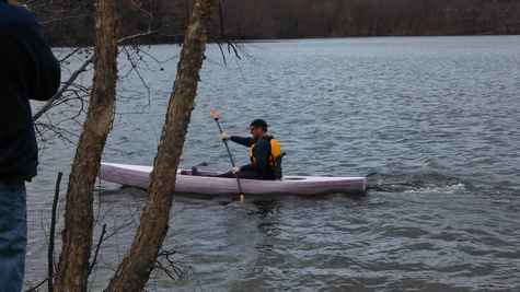 After a weeks delay in the launch due to having to replace the house drain pipes all the way to the sewer line (rotten cast iron), I got to test float Sawfish, my new foam kayak. The idea was inspired by my experimental foam mouseboat Seafoam (launched last spring) and Dave Lucas. The uncoated foam hull is 29" wide at the widest, 27" at the bottom and twelve feet long. I built it wide for kids and my parents (who will be getting this one and the next one). They care more about stability and ease of car topping, than speed, so shorter and wide was the target.